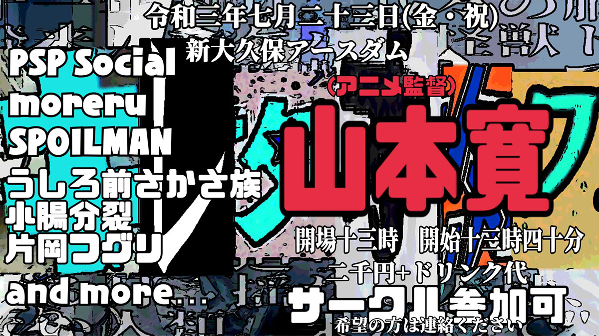 ACT:PSP Social / 山本寛(アニメ監督) / moreru / SPOILMAN / うしろ前さかさ族 / 小腸分裂 / 片岡フグリ / and more..