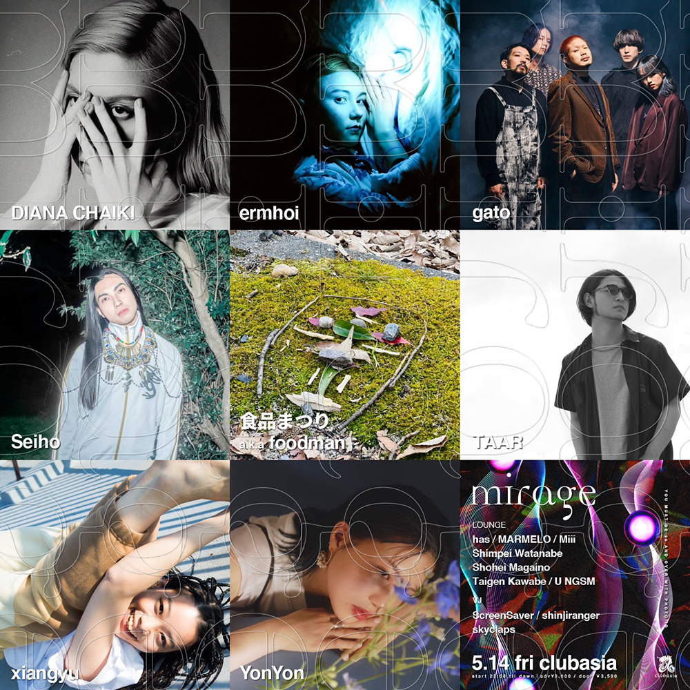 【NEWS】イベント情報:クラブをルーツに躍進を続けるアーティストが集結したイベント「mirage」5/14(金)に渋谷clubasiaにて開催