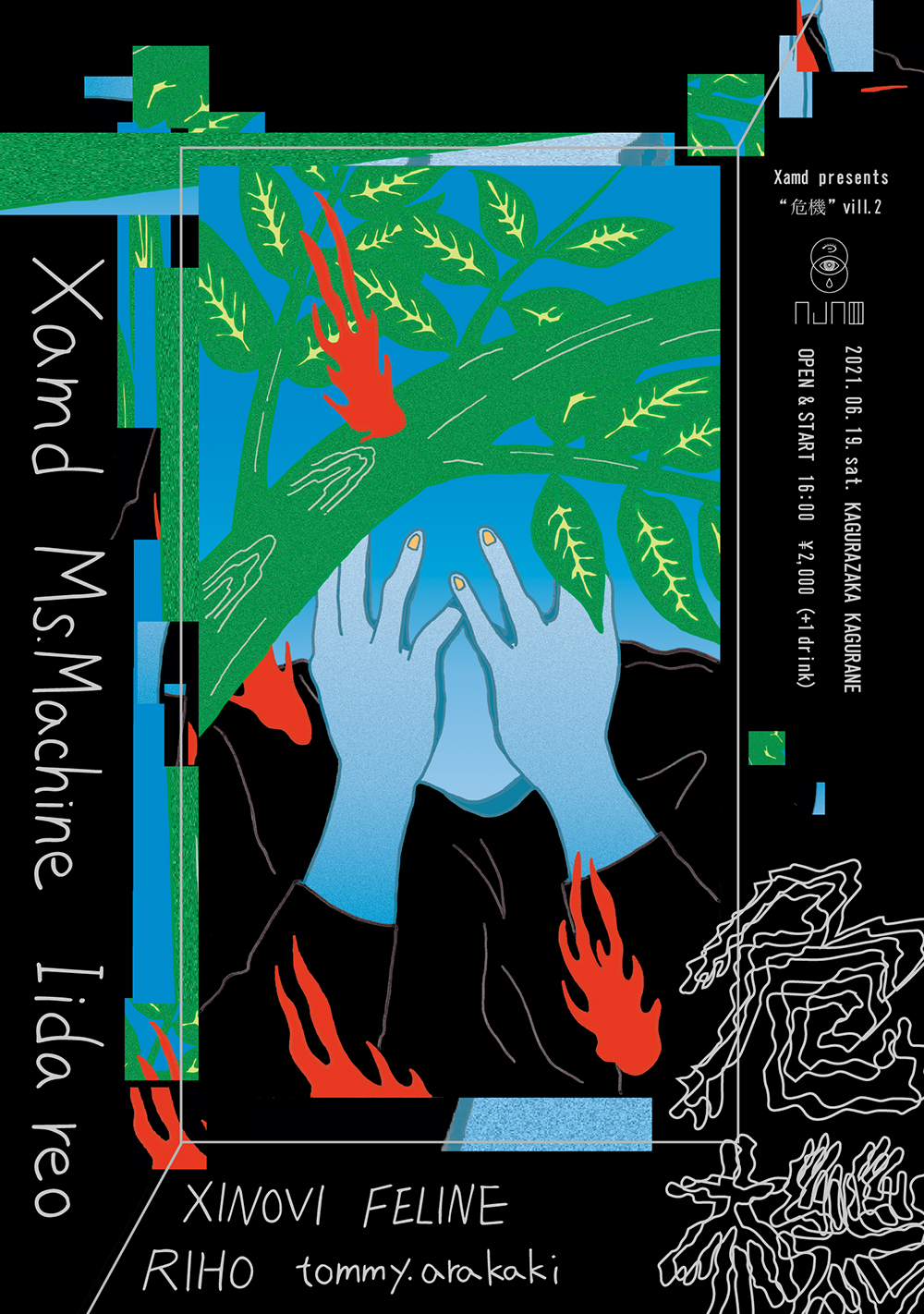 主催のXamdの他、Iida reo、Ms.Machineがライブアクトとして、またDJにはXINOVI、FELINE、RIHO、tommy.arakakiを迎えている。