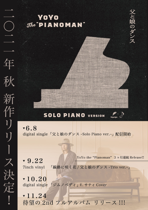 【NEWS】YoYo(SOFFet)によるソロプロジェクトYoYo the “Pianoman” シングル「父と娘のダンス~Solo Piano ver.~」配信開始