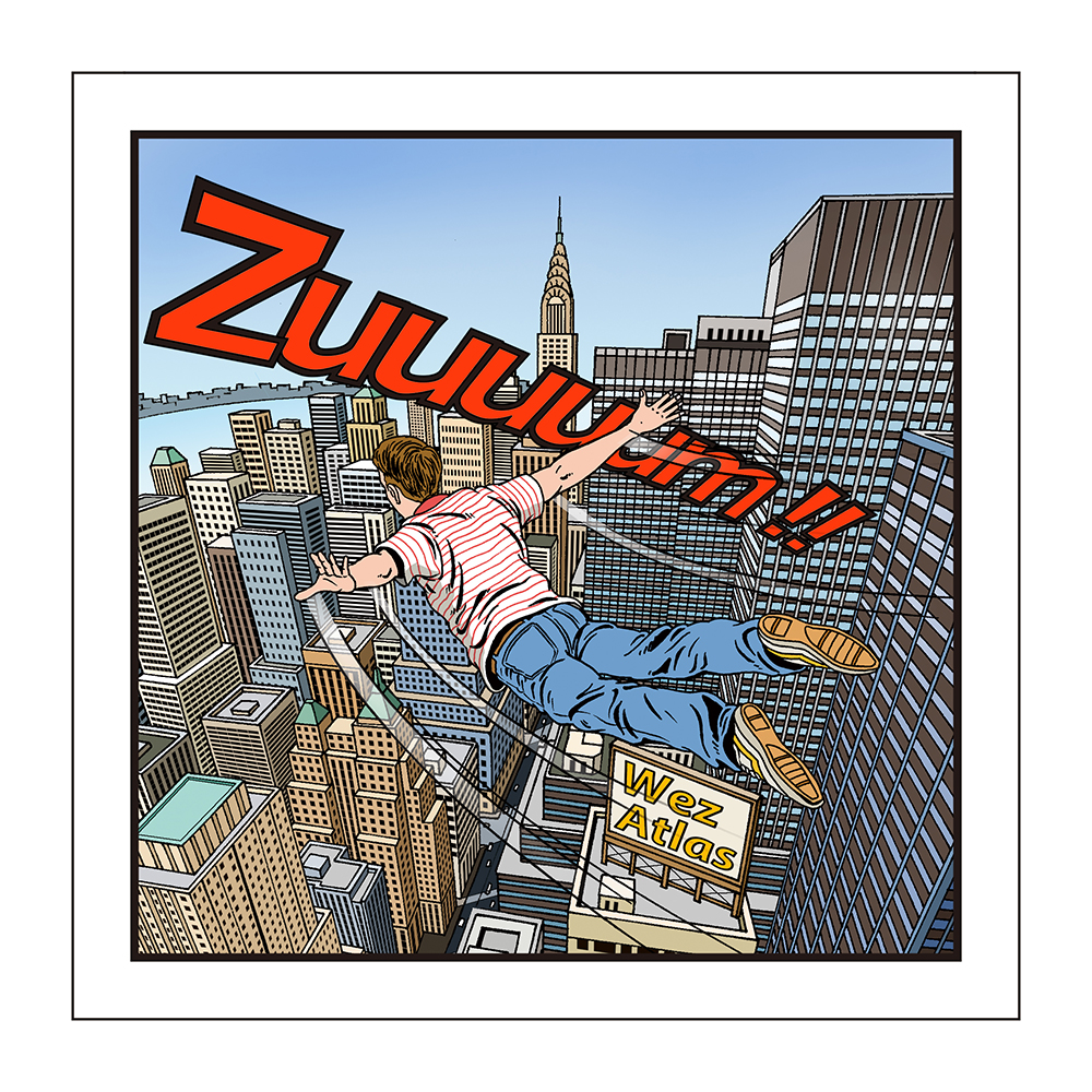 Wez自身が街を飛ぶ、アメリカンコミックを思わせるジャケットデザインはイラストレーター小林修治が担当。