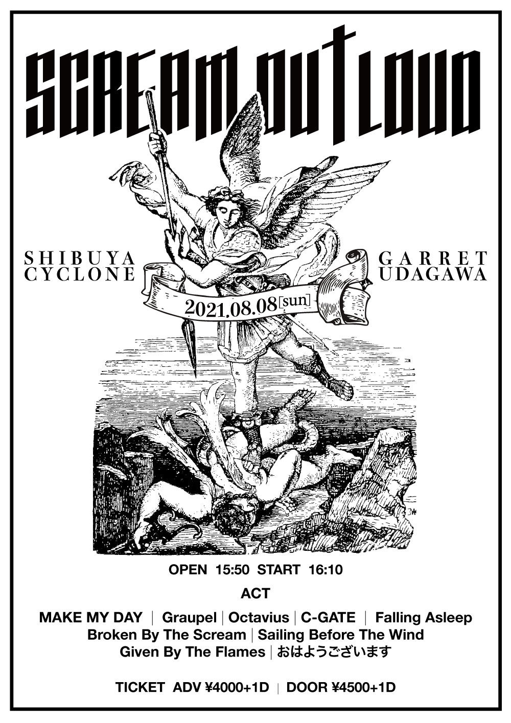 【NEWS】イベント情報:MAKE MY DAY サーキット・フェス『SCREAM OUT LOUD FEST』の開催を発表 Graupel、Broken By The Scream、C-GATE、Falling Asleep、Given By The Flames、Octavius、おはようございます、Sailing Before The Windが出演