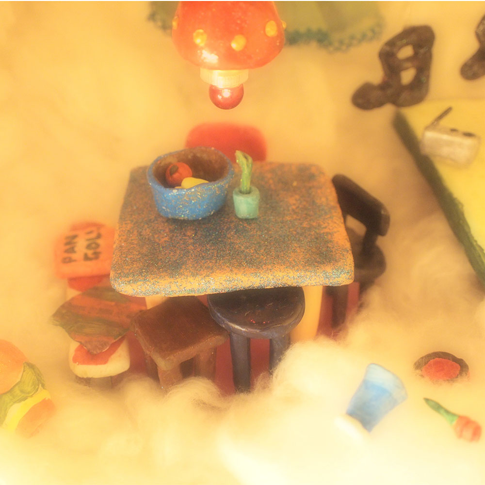 部屋は紙粘土でつくりました。粘土があればなんでもできる!