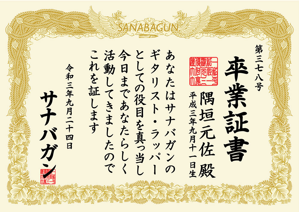 合わせて、SANABAGUN.から隅垣へ向けた”卒業証書”も掲載されており、SANABAGUN.らしさの詰まった卒業発表と言えるだろう。