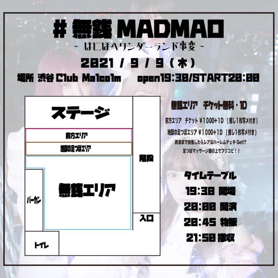 【NEWS】イベント情報:MADMAO 無銭ライブ『ノンストップMADMAO 〜はにほへワンダーランド事変〜』の開催を発表