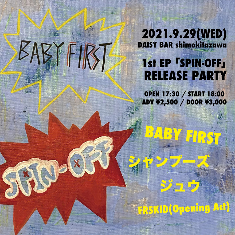 BABY FIRST(ベビー・ファースト)が9/29(水)に下北沢Daisy Barにて開催するレコ発企画「BABY FIRST 1st EP『SPIN-OFF』Release Party」の詳細が発表された。
