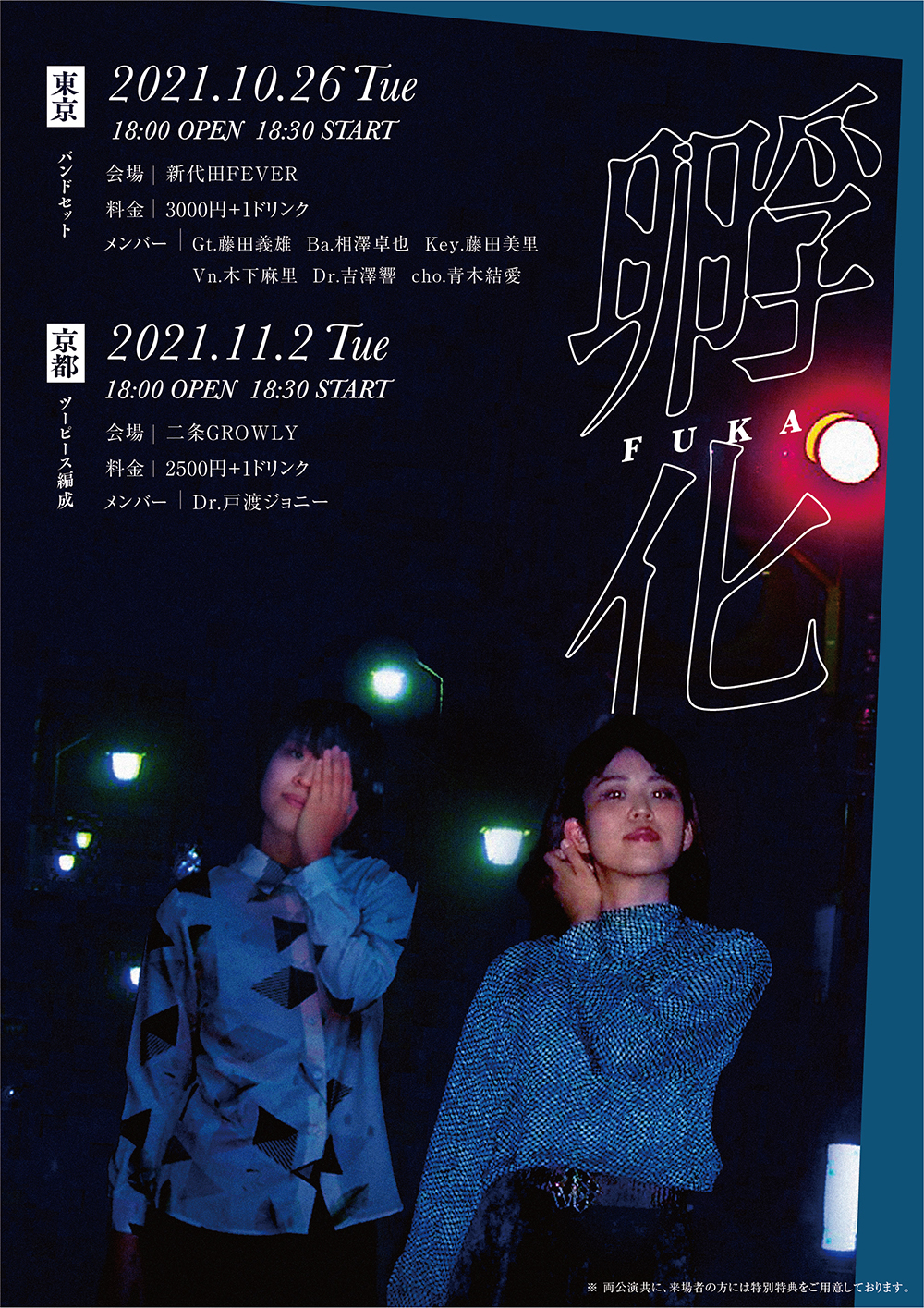 今までにない挑戦で、東京編ではフルバンドを引き下げての演奏、京都編では同期もなしに、生音のみでドラムとの2ピースで表現の限界に挑戦するライブとなる。