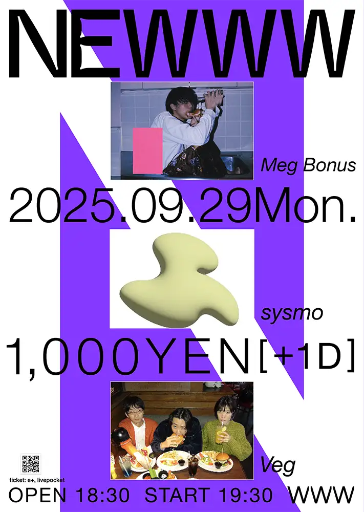 【NEWS】イベント情報:新世代のアーティストを紹介するWWWレギュラー企画『NEWWW vol.32』にMeg Bonus、sysmo、Vegの3組が出演