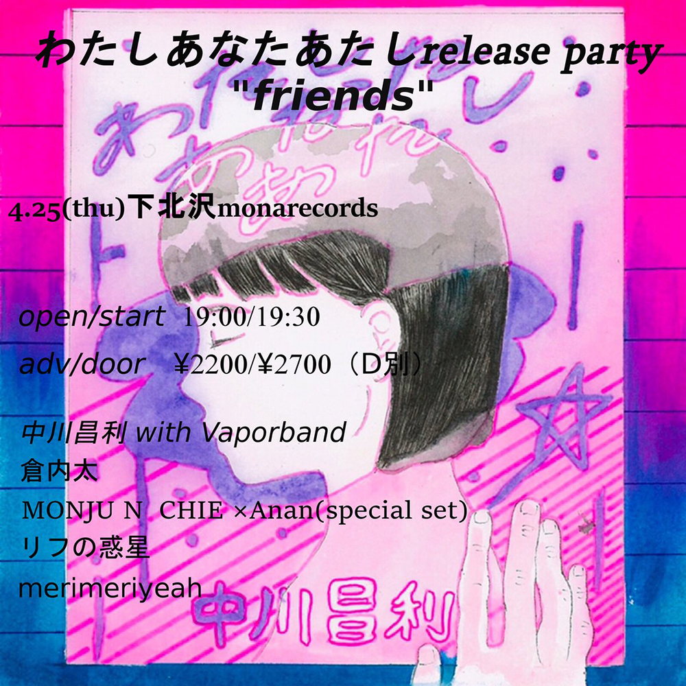 また、リリース日翌日の4/25(木)には下北沢モナレコードにてリリースパーティー『friends』の開催も決定してる。