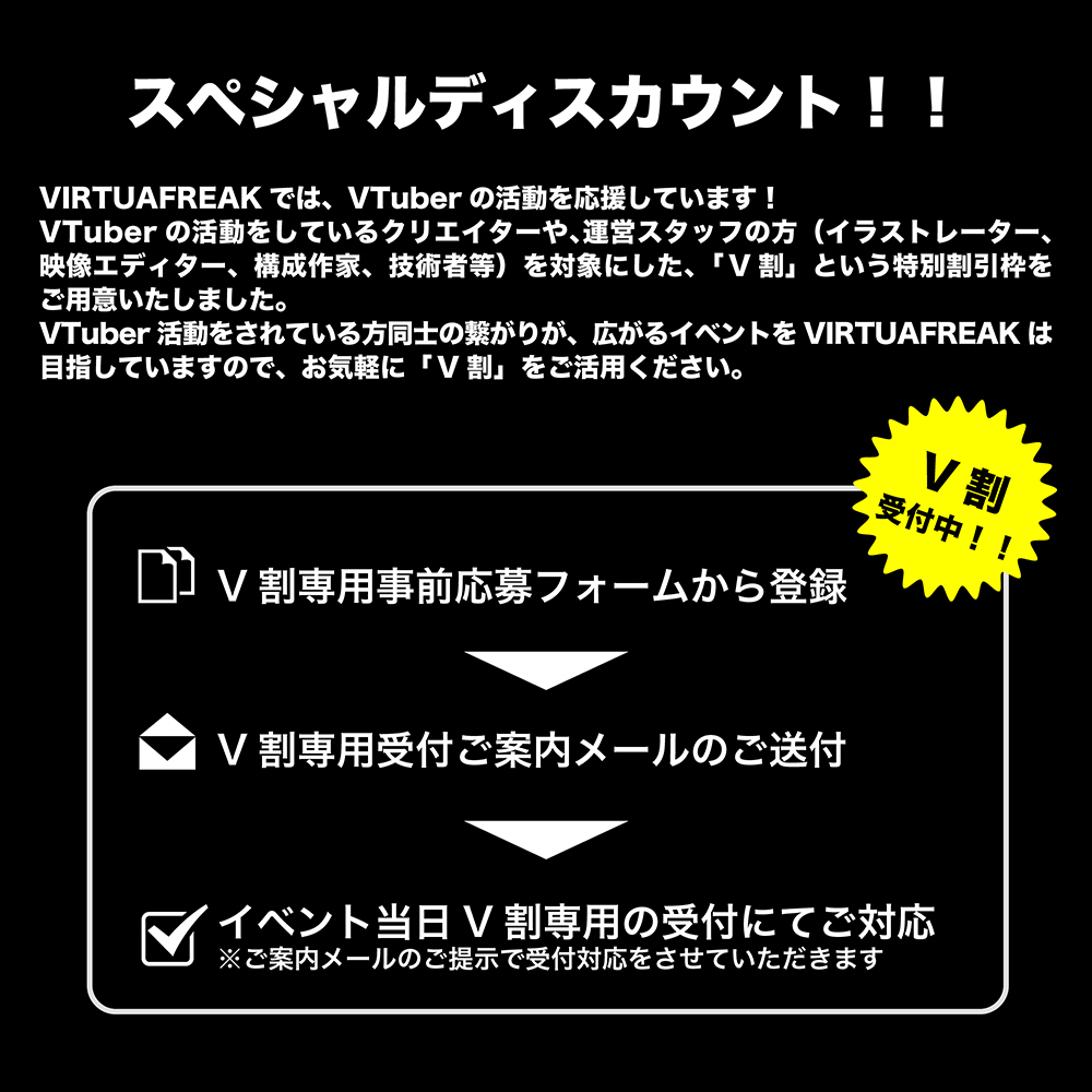 現在一般事前予約やVTuberのクリエーターや運営スタッフを対象にした「V割」の特別割引枠も受付中。