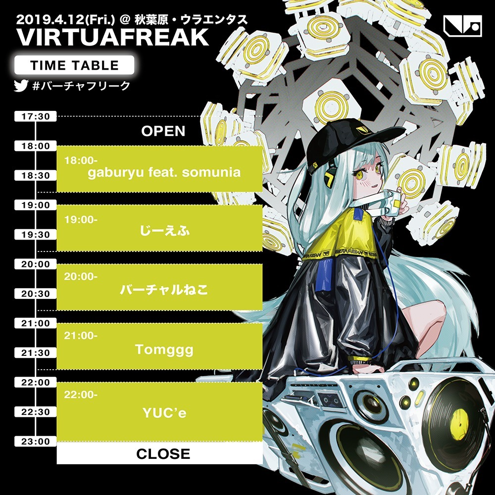 【NEWS】イベント情報:VTuberフリークが集うナイトイベント『VIRTUAFREAK Vol.3』開催 出演にgaburyu feat. somunia、じーえふ、Tomggg、バーチャルねこ、YUC’e