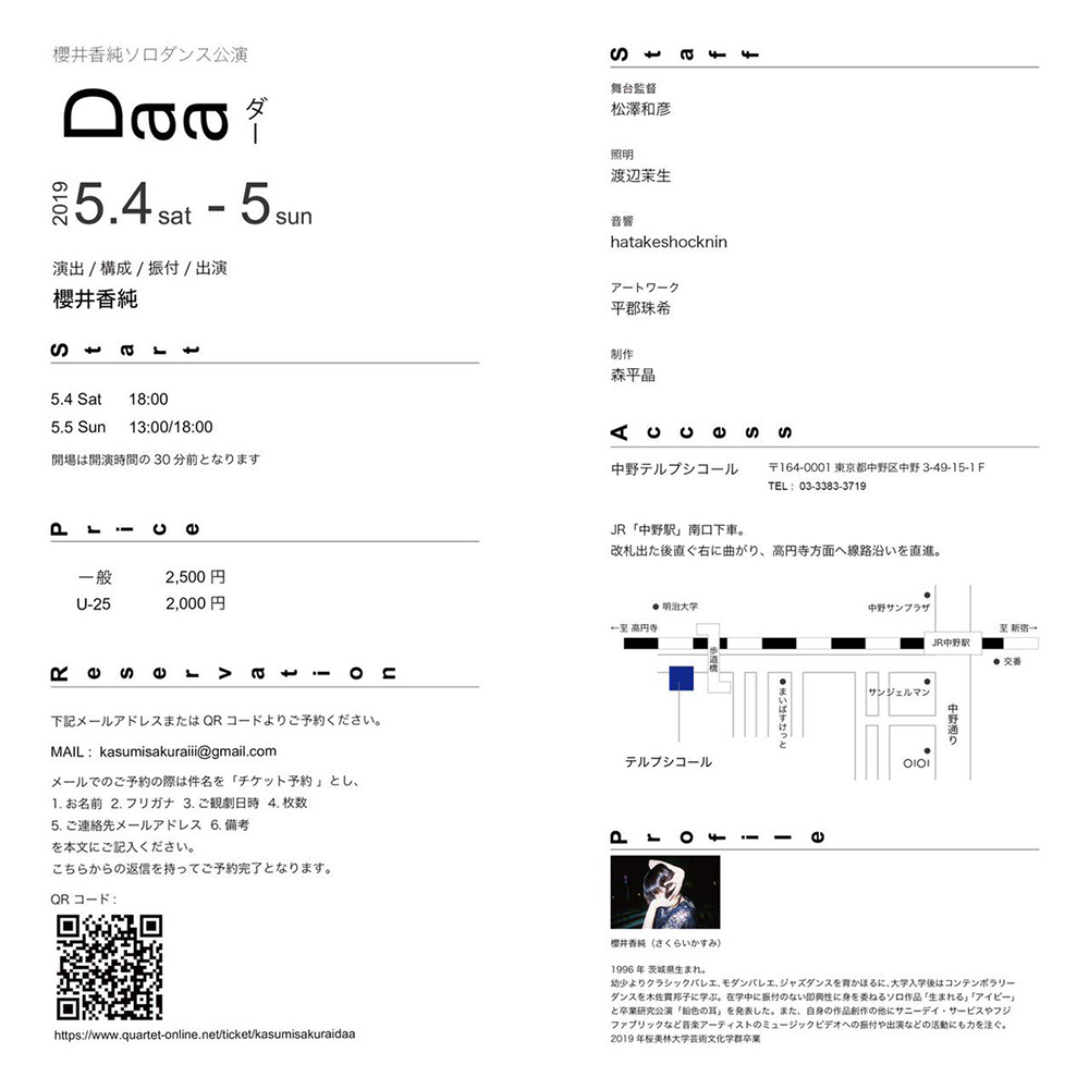 ダンサー、振付師として活動する櫻井香純のソロダンス公演が5/4(土)5(日)に開催される。