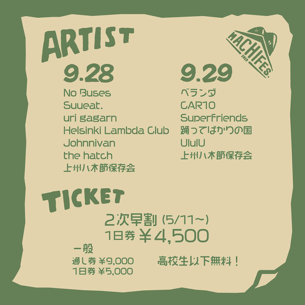 現在No Buses、Suueat.、uri gagarn、Helsinki Lambda Club、Johnnivan、the hatch、ベランダ、CAR10、Superfriends、踊ってばかりの国、UlulU、上州八木節保存会の出演がアナウンスされている。