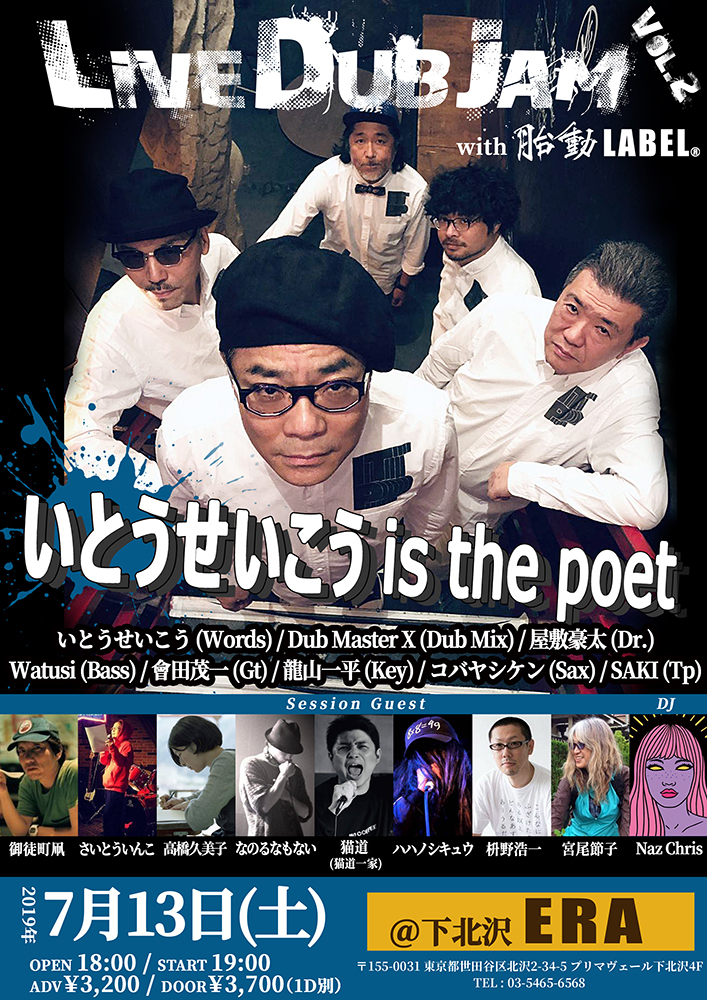 いとうせいこう率いるタブポエトリーユニット、いとうせいこう is the poetと胎動LABEL主催のイベント『Live Dub Jam vol.2』が7/13(土)に下北沢ERAにて開催。