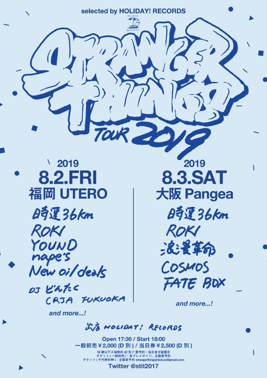 大阪のディストロ/WEBショップHOLIDAY! RECORDSのセレクトによるイベント『STRANGER THINGS』が8月に行うツアーの追加出演者が発表された。