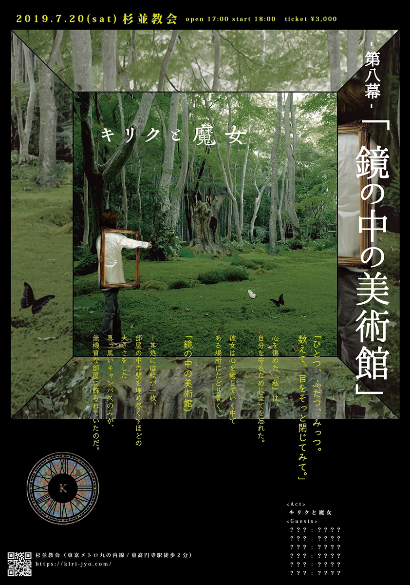 このワンマンは、第一部を『鏡の中の美術館』、第二部にキリクと魔女のアコースティックワンマンという形で上演される。