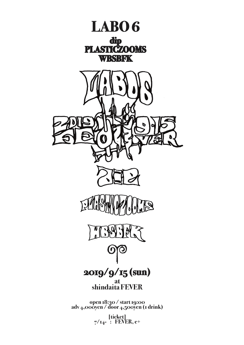 【NEWS】イベント情報:dipによるイベント『LABO 6』9/15(日)開催 出演にPLASTICZOOMS、WBSBFK