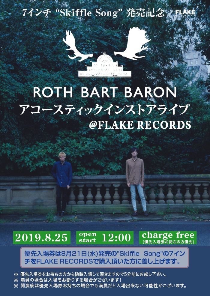 (FLAKE RECORDで「Skiffle Song」7inch 購入者に優先入場券配布)
