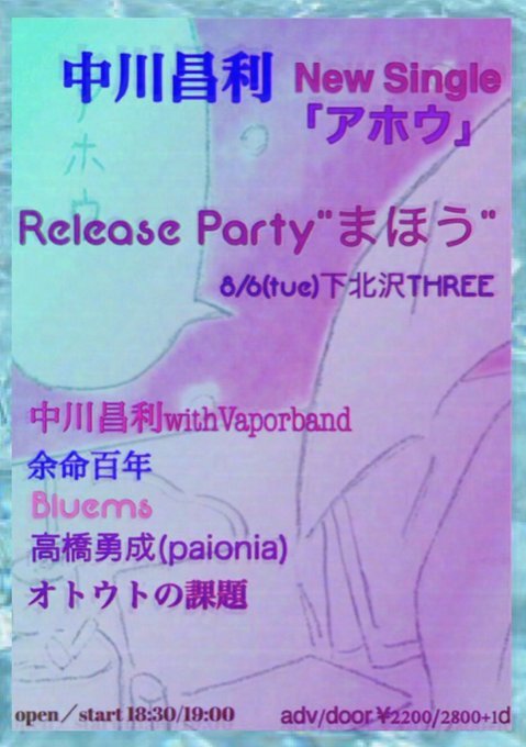 【NEWS】中川昌利 シングル「アホウ」の配信を開始 & 8/6(火)にはリリースイベントも開催