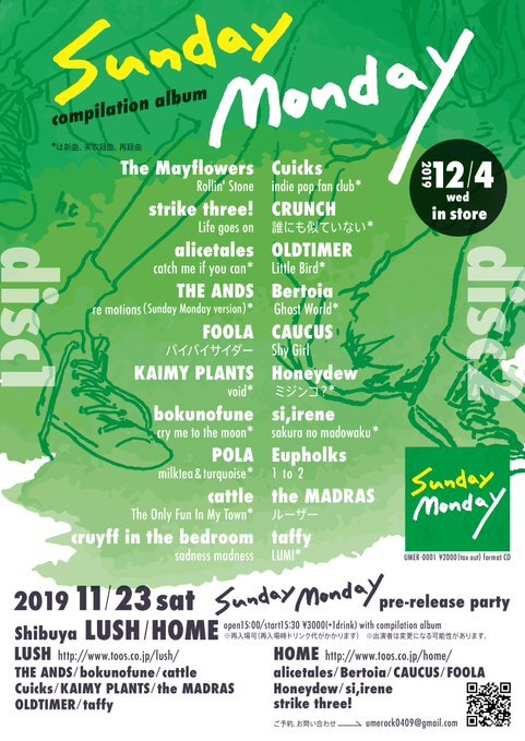 このコンピレーションには、The Mayflowers、strike three!、alicetales、THE ANDS、FOOLA、KAIMY PLANTS、bokunofune、POLA、cattle、cruyff in the bedroom、Cuicks、CRUNCH、OLDTIMER、Bertoia、CAUCUS、Honeydew、si,irene、Eupholks、the MADRAS、taffyと国内外で活動する20バンドが参加。