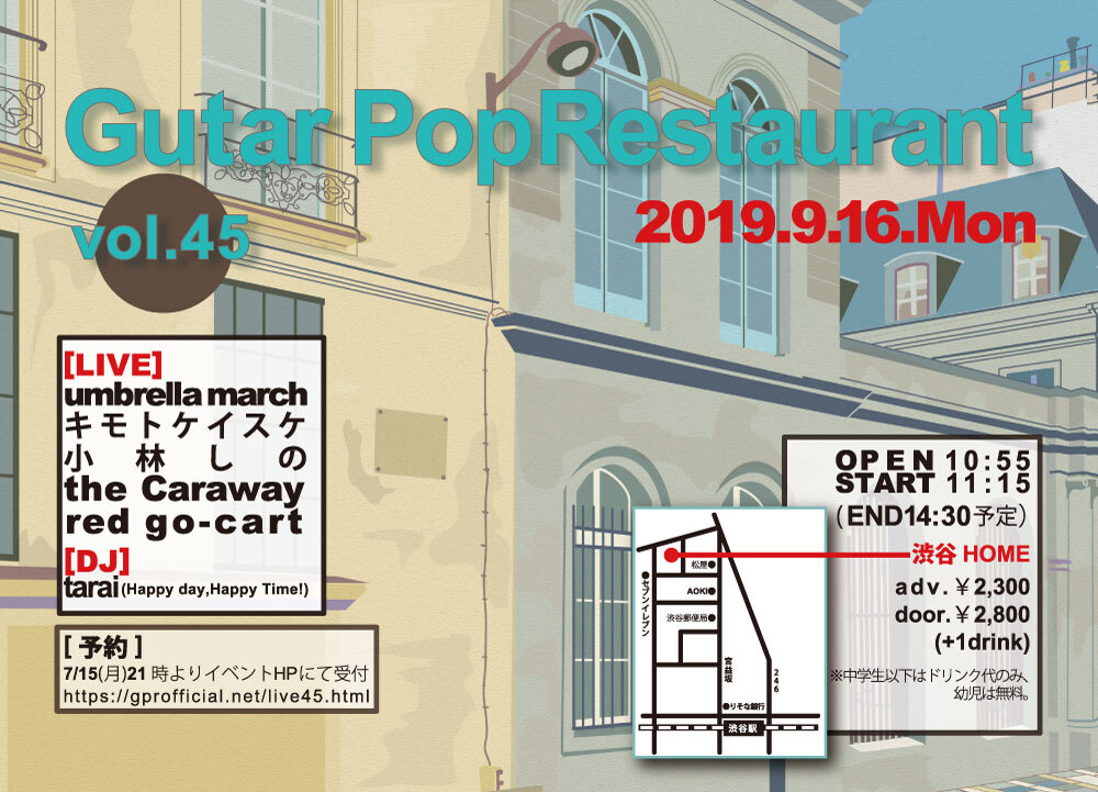 【NEWS】イベント情報:ギターポップと渋谷系を中心としたイベント『Guitar Pop Restaurant vol.45』9/16(月・祝)開催 & 出演者キモトケイスケのE.P.『arbre livre e.p.』が今会場より販売開始