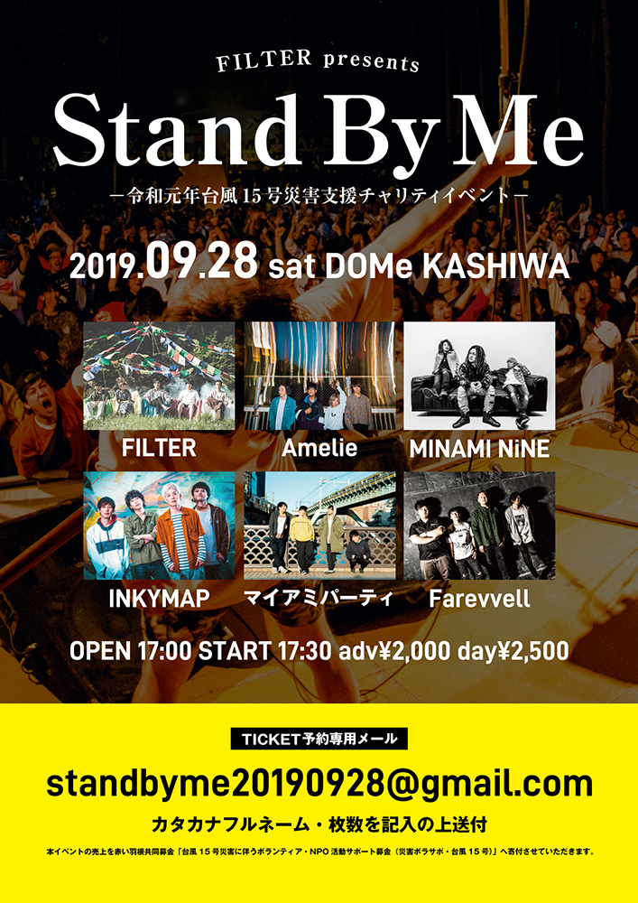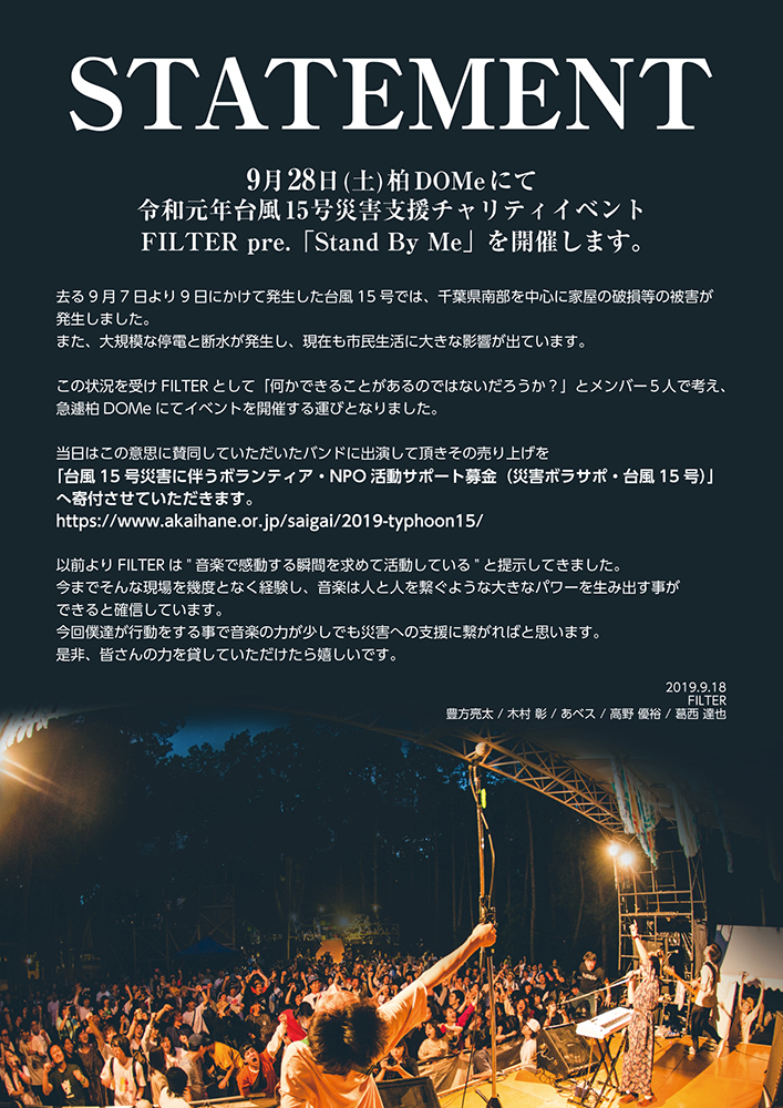 【NEWS】イベント情報:FILTER 台風15号の被災地を支援するチャリティイベント『Stand By Me』を開催を急遽決定