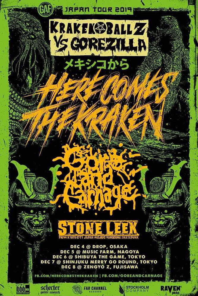 【NEWS】イベント情報:メキシコのデスコア・バンド Here Comes The Krakenとグラインドコア・バンドGORE AND CARNAGEの来日公演12月に開催 全日程でSTONE LEEKが帯同