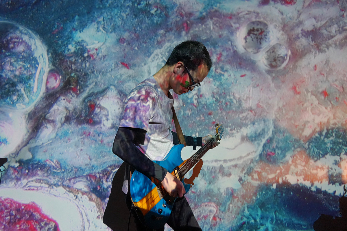 オープニング・アクトンにはる現代音楽家の鈴木昭男との共演を行い、国内外のファッションショーや展示会、個展、への楽曲制作、リミックスを主に行うエレキギターユニットdrowsinessが出演する。