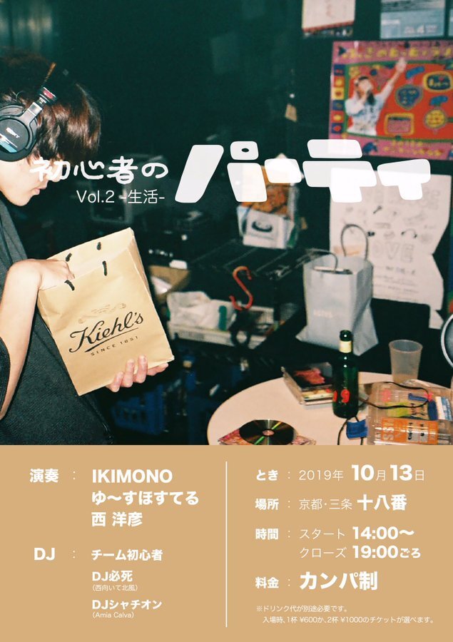 また、彼らはIKIMONOとの共同開催『初心者のパーティ』の第2回目を10/13(日)に京都 十八番にて開催する。