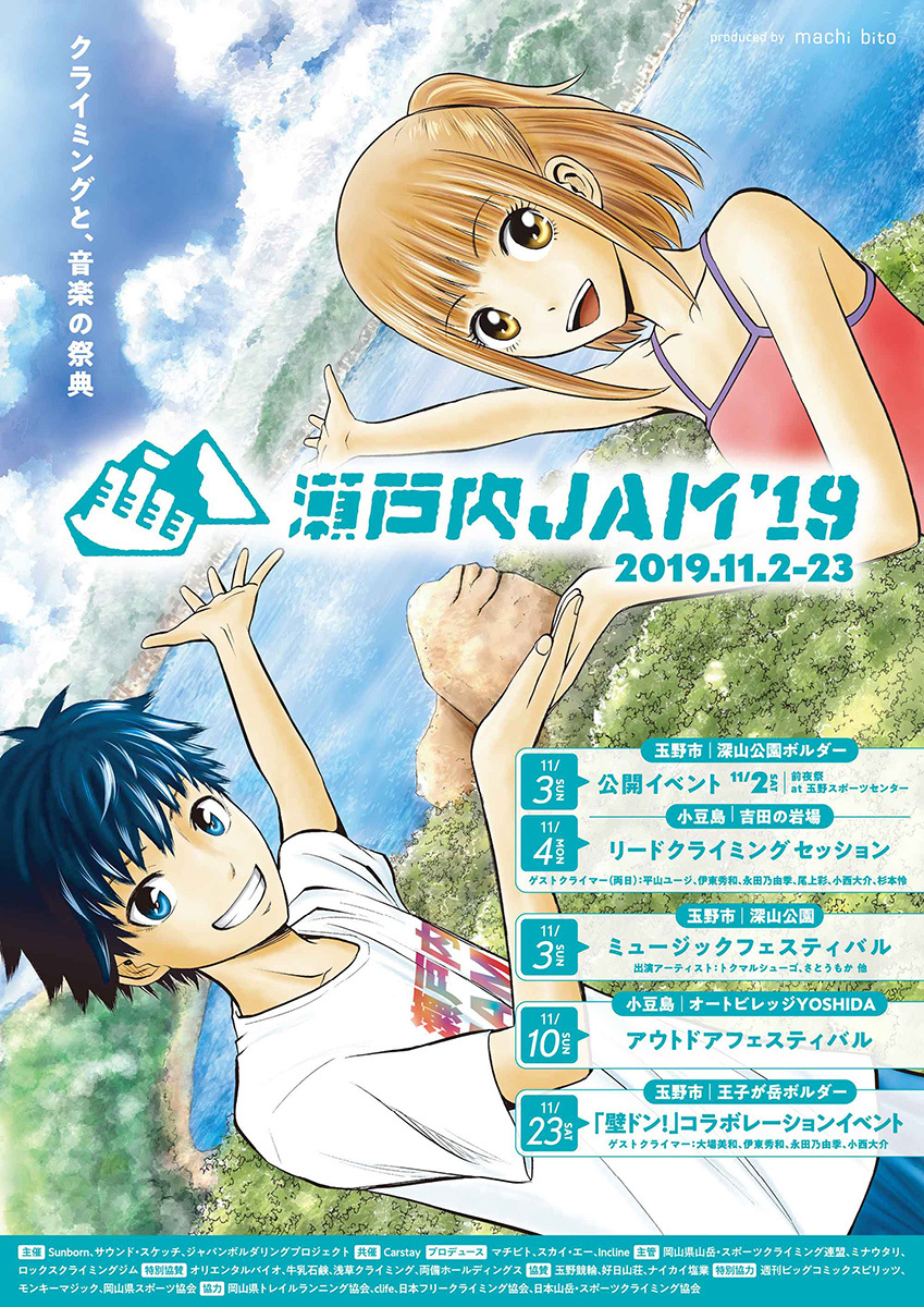 今年で2回目の開催となるクライミングと音楽の複合イベント『瀬戸内JAM’19』が岡山県玉野市を中心に県内外の各所で開催される。