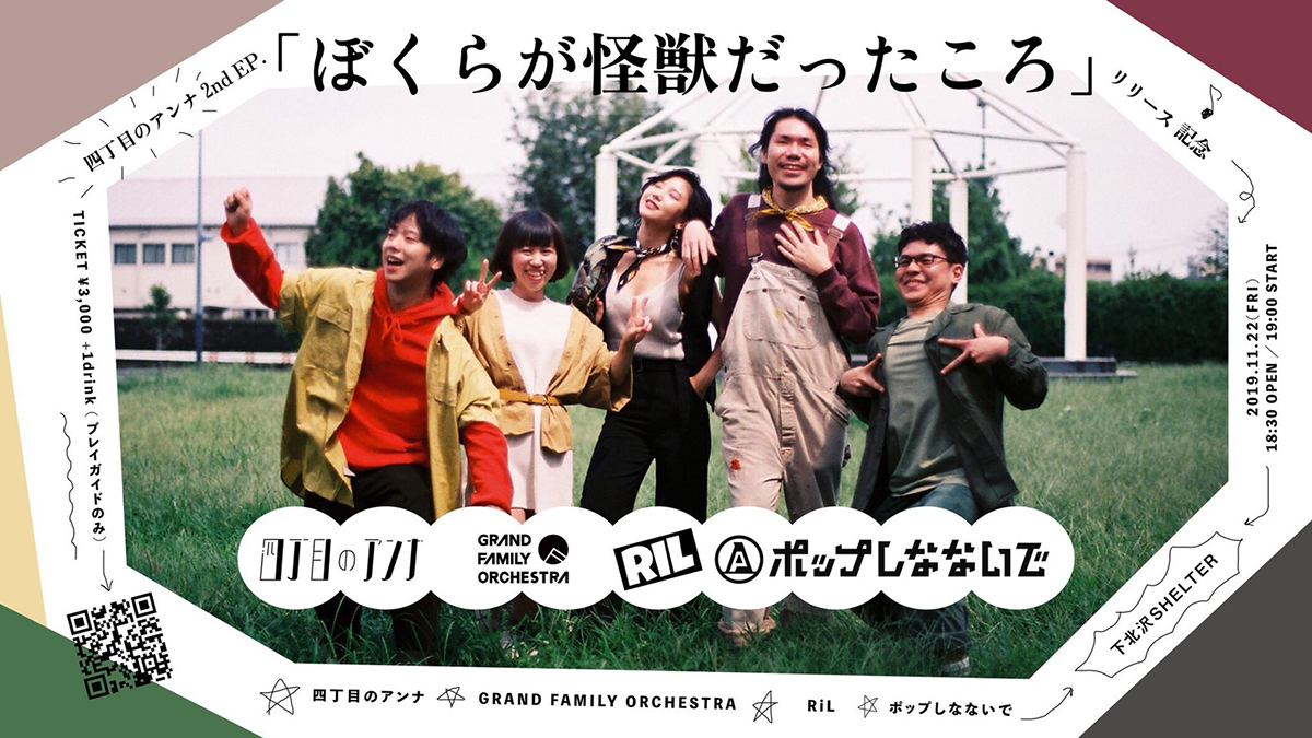 東京を拠点として活動する5人組 四丁目のアンナは、E.P.『ぼくらが怪獣だったころ』を11/22にリリースする。