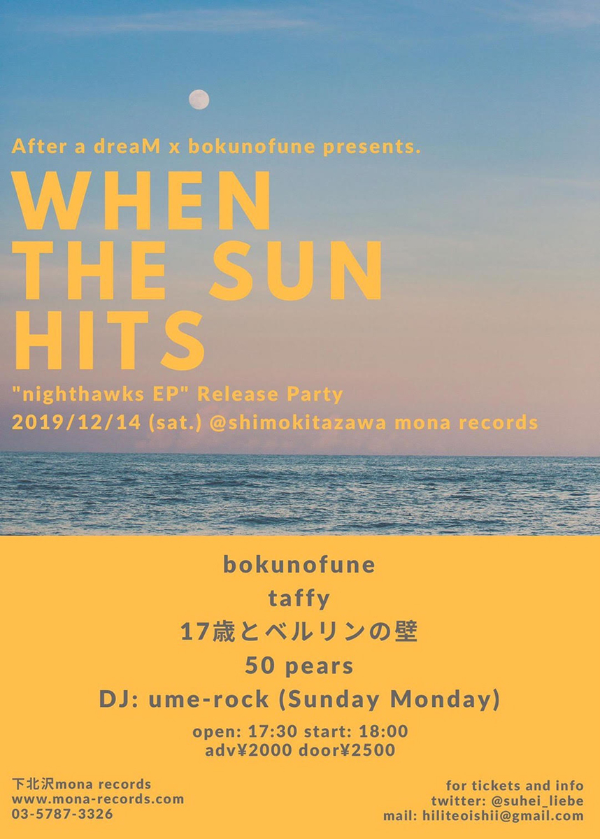 【NEWS】イベント情報:bokunofune 12/14リリースのE.P.『nighthawks』より皆様ズパラダイス監督のMV「Cry me to the moon」公開 & 12/14(土)にリリースパーティーを開催