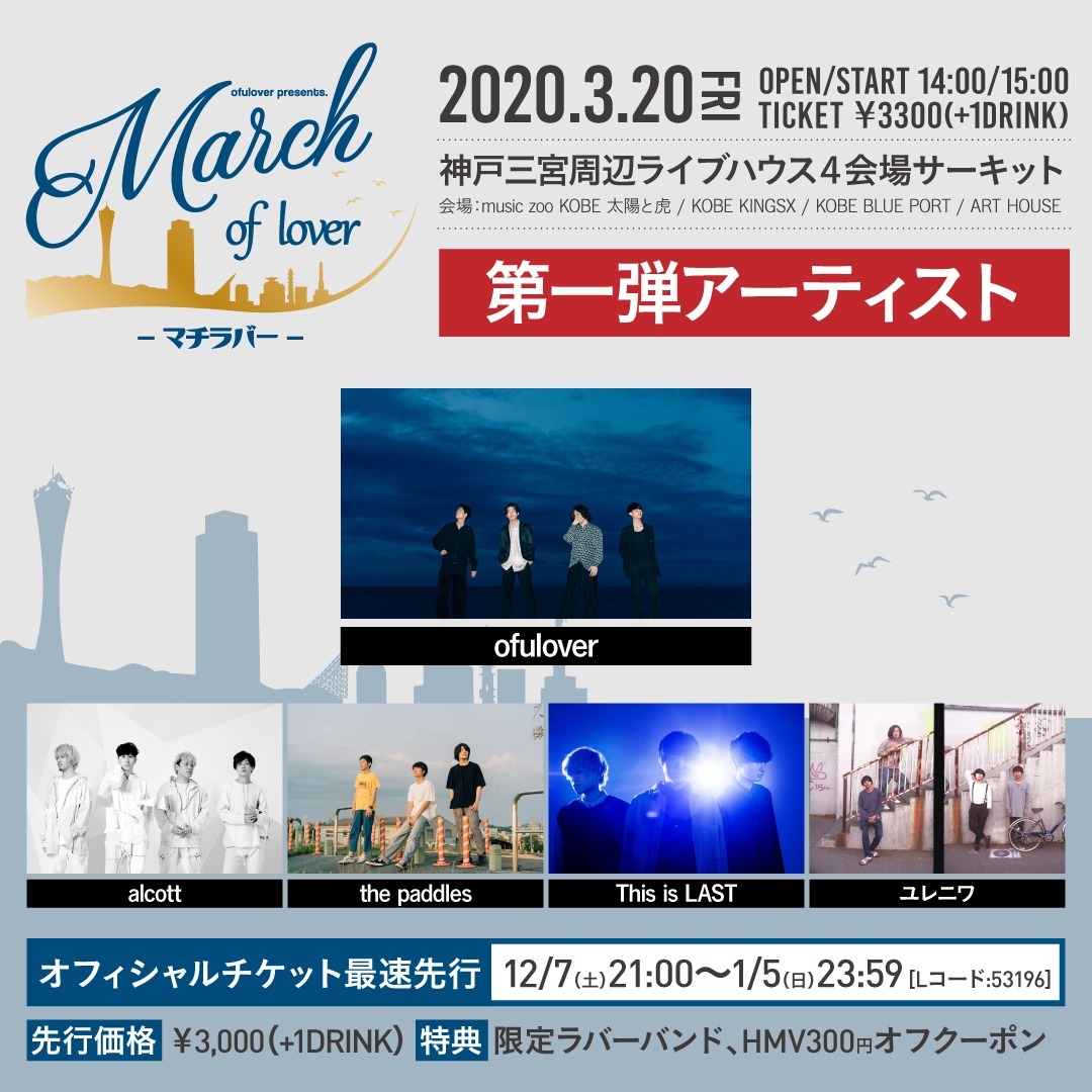 神戸発のバンドofuloverによるサーキットイベント『March of lover 2020 -マチラバー-』が2020年3/20(金)に開催される。