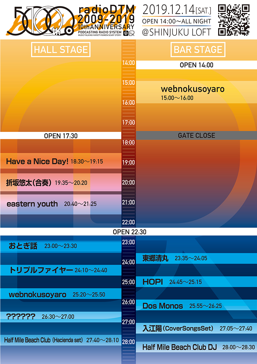 ACT:入江陽(Cover Songs Set) / おとぎ話 / 東郷清丸 / Dos Monos / トリプルファイヤー / Half Mile Beach Club(Haçienda Set) / HOPI / webnokusoyaro / ???????