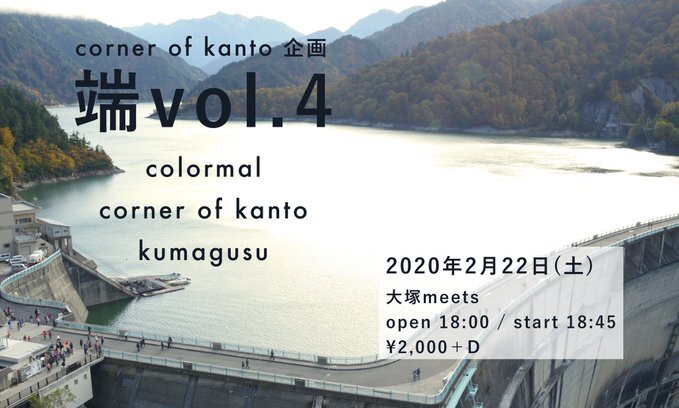 【NEWS】corner of kanto ライブ映像『暗渠』を公開 & 自主企画『端 vol.4』2020年2/22(土)に開催