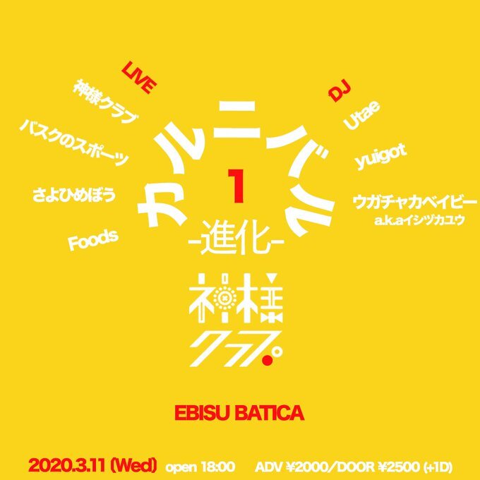 【NEWS】神様クラブ アルバム『JURA』リリース & 3/11(水)開催自主企画『カルニバル1-進化-』の出演者としてさよひめぼう、バスクのスポーツ、Foods他を発表