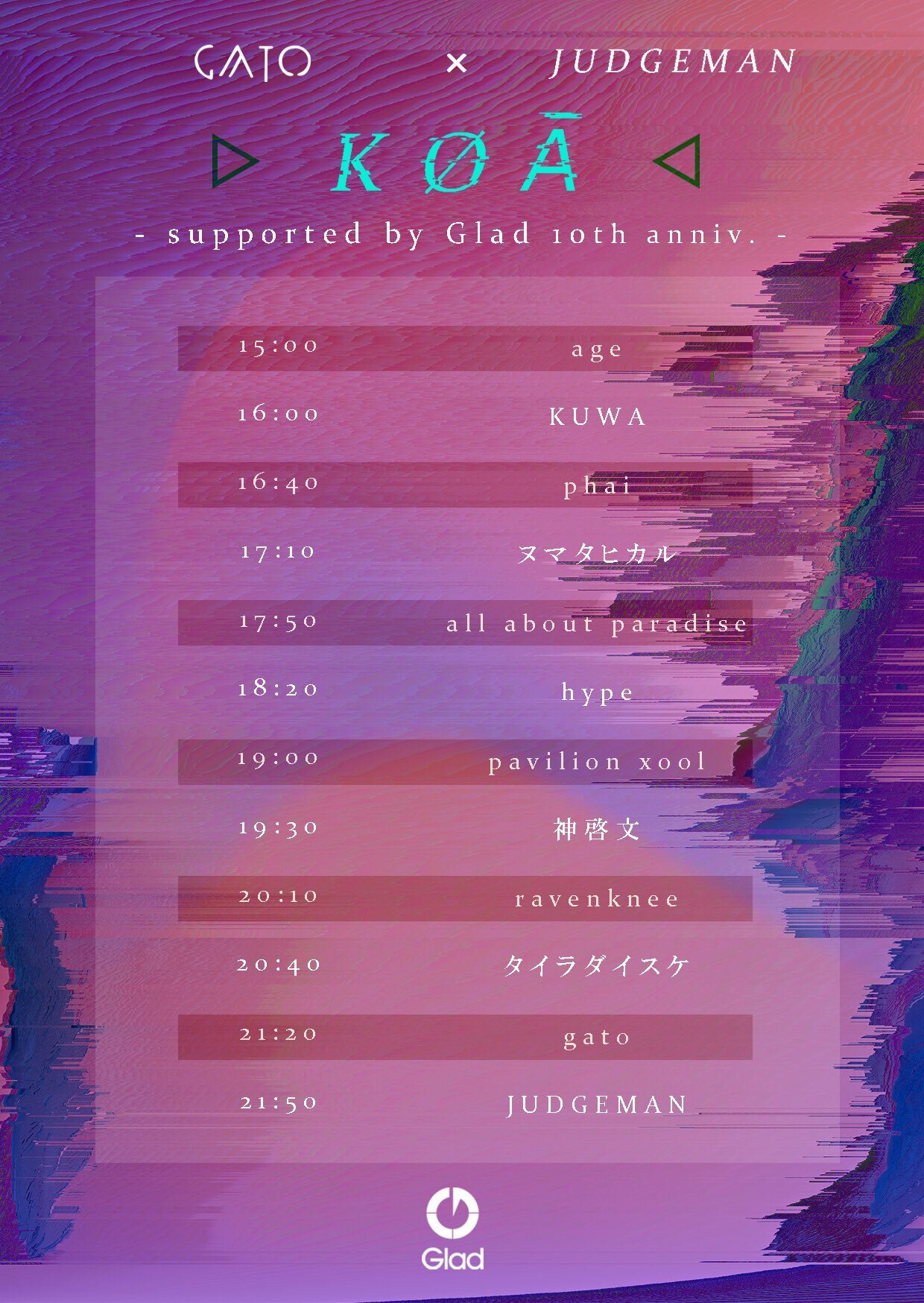 【NEWS】イベント情報:gato × JUDGEMAN pre.『KØĀ』2/16(日)開催 出演にphai、pavilion xool、all about paradise、ravenknee 他