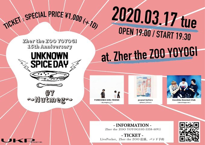 peanut buttersは3/17(火)開催の『NKNOWN SPICE DAY』に出演を予定している。