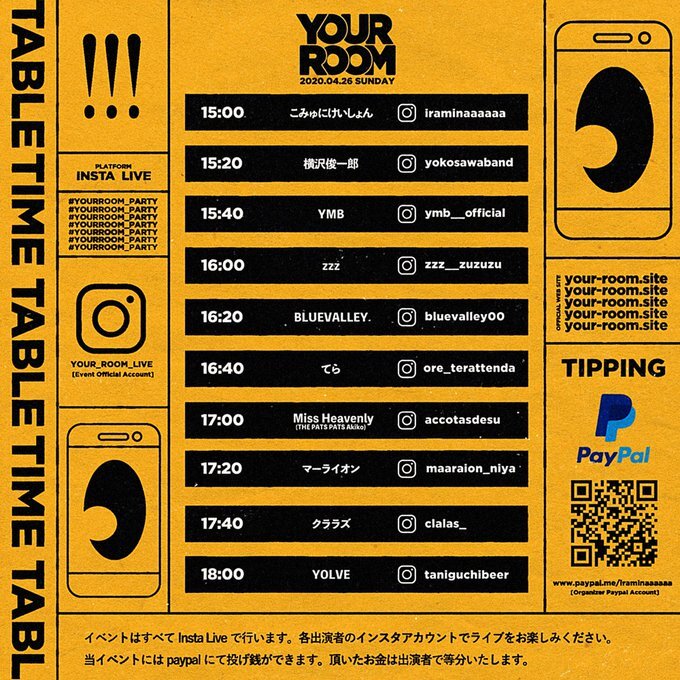 本日4/26(日)に開催されるインスタライブサーキット『YOUR ROOM』のタイムテーブルが発表された。