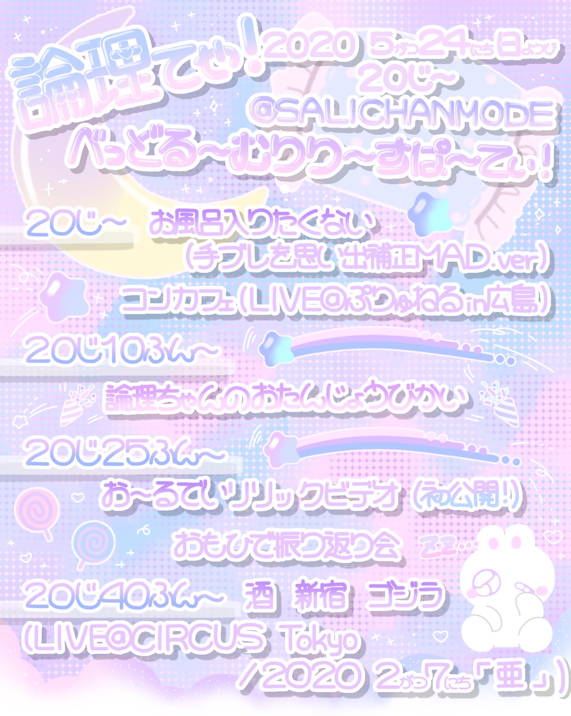 また、本日5/24(日)の20:00より、 SALICHANMODEのYouTubeチャンネルにてリリースパーティー『論理てゃ!べっどる~むりり~すぱ~てぃ』が配信される。