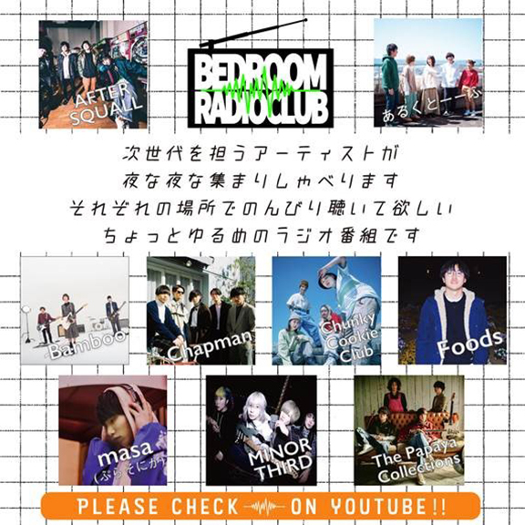 YouTubeラジオコンテンツ『BEDROOM RADIO CLUB』は、ライブ活動やレコーディング等がコロナ禍で制限される中、ファンやリスナーに向け、インディーズで活動中のアーティストたちが在宅からリモート機能を使いYouTubeラジオコンテンツを作ろうと企画されたもの。