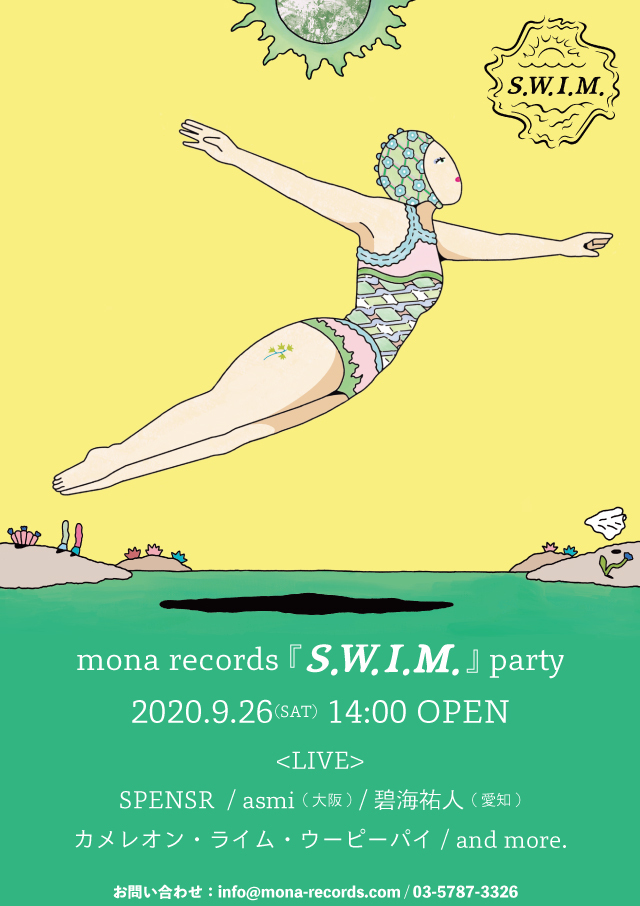 さらに9/26(土)には下北沢のmona recordsにて2フロア往来サーキットイベント『mona records『S.W.I.M.』PARTY』が開催される。