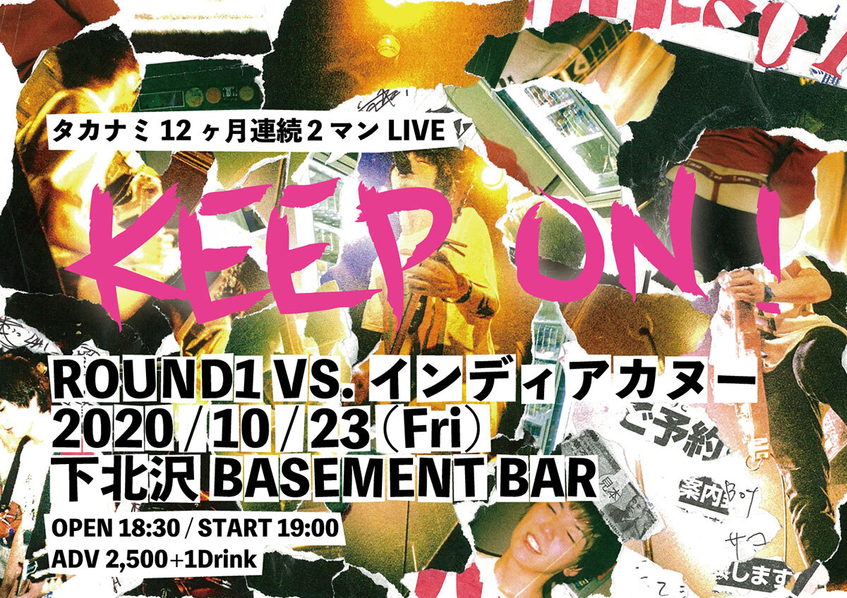【NEWS】イベント情報:タカナミ 12ヶ月連続のツーマンライブ『KEEP ON』スタート 第1回はインディアカヌーを招いて10/23(金)に開催