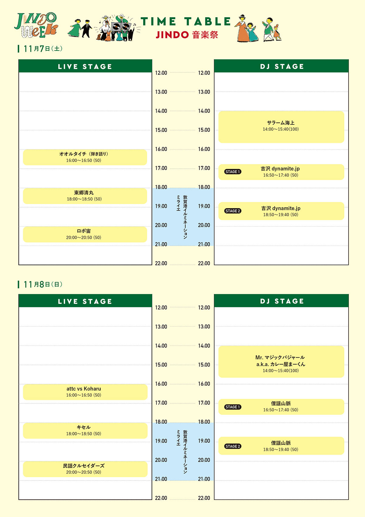 【NEWS】イベント情報:11/7(土)8(日)開催『JINDO音楽祭』 タイムテーブル発表