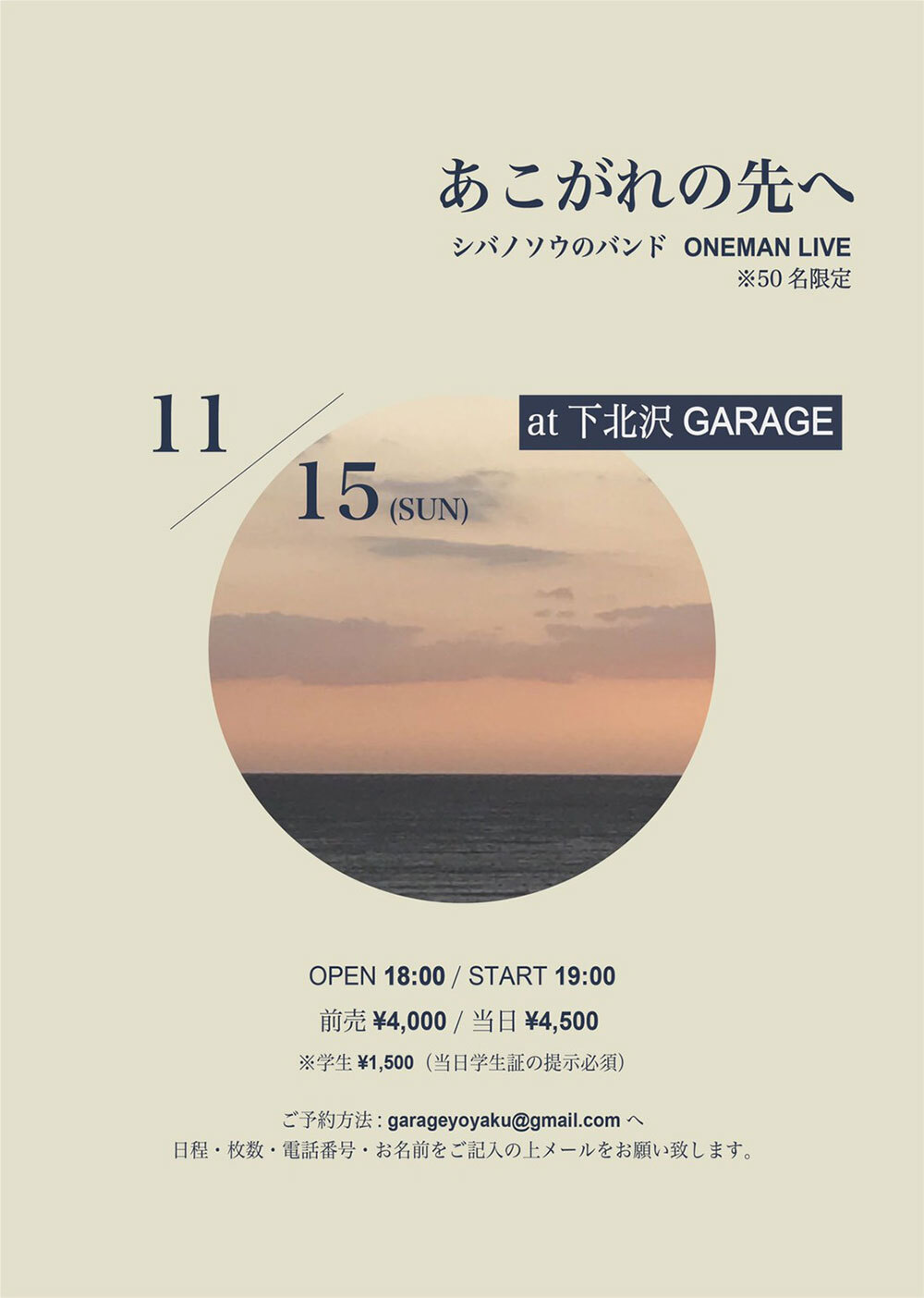 また、シバノソウは11/15(日)にシバノソウのバンド名義でのワンマン『あこがれの先へ』を開催。