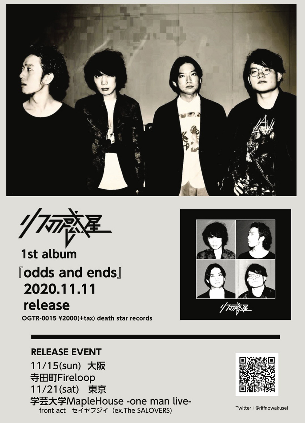 現在indiegrabにてインタビューを公開中のリフの惑星による1stフルアルバム『odds and ends』が本日11/11にリリースされた。