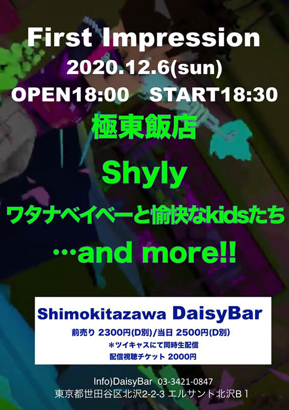 今回彼らが出演するのは12/6(日)に下北沢DaisyBarにて開催される『First Impression』。