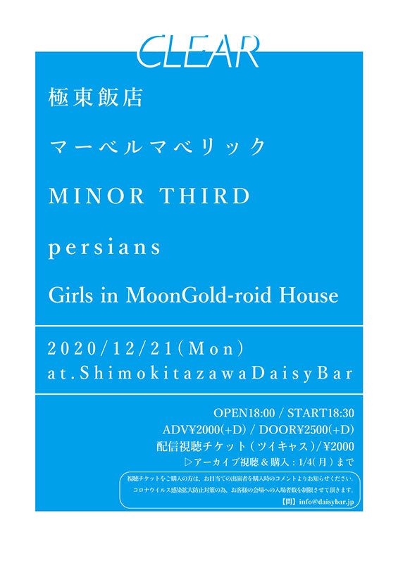 また、12/21(月)には同じくDaisyBarで開催される『CLEAR』にも出演が決定している。