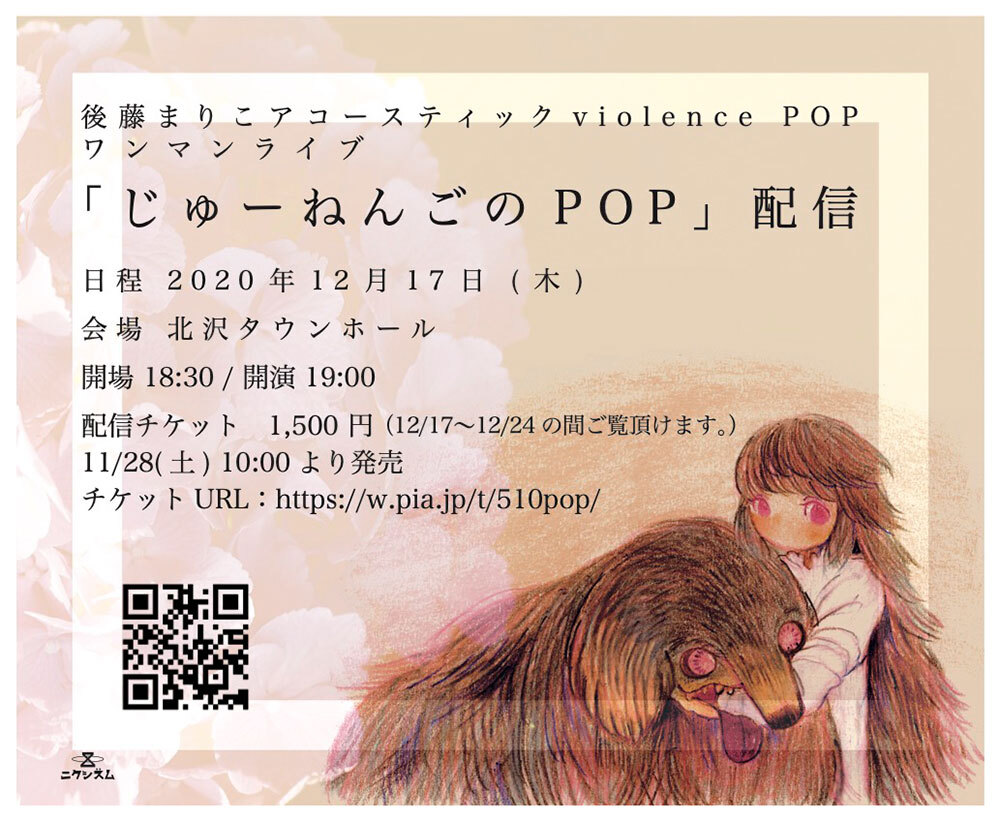 12/16にリリースされる後藤まりこアコースティックviolence POPの1stアルバム『POP』のアナログ盤が2021年の1/27にHMV record shopからリリースされる。