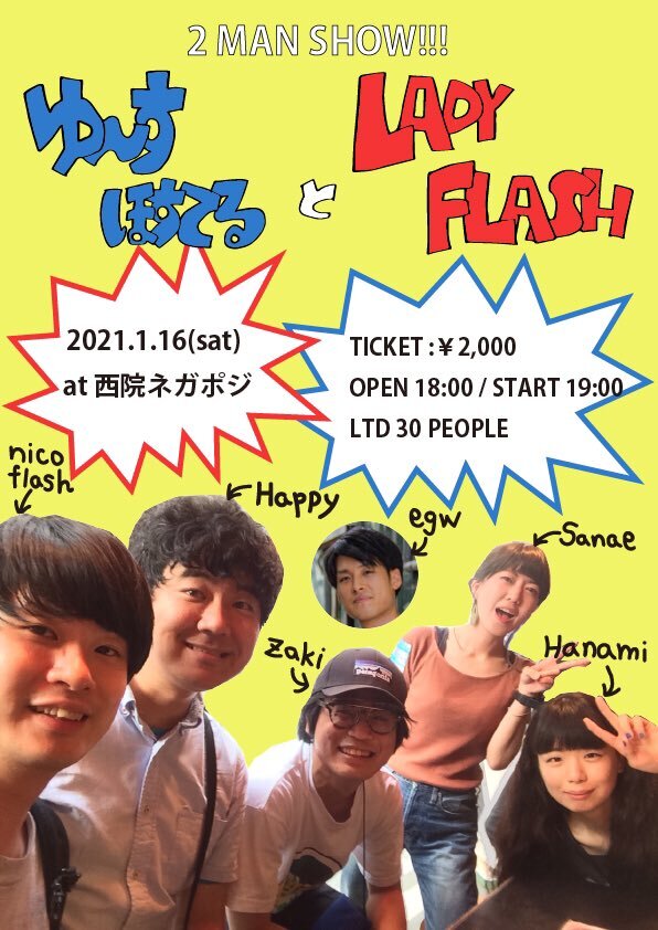 また、ゆ〜すほすてるによる自主企画『ゆ〜すほすてるとLADY FLASH』が2021年の1/16(土)に西院 ネガポジで開催決定。
